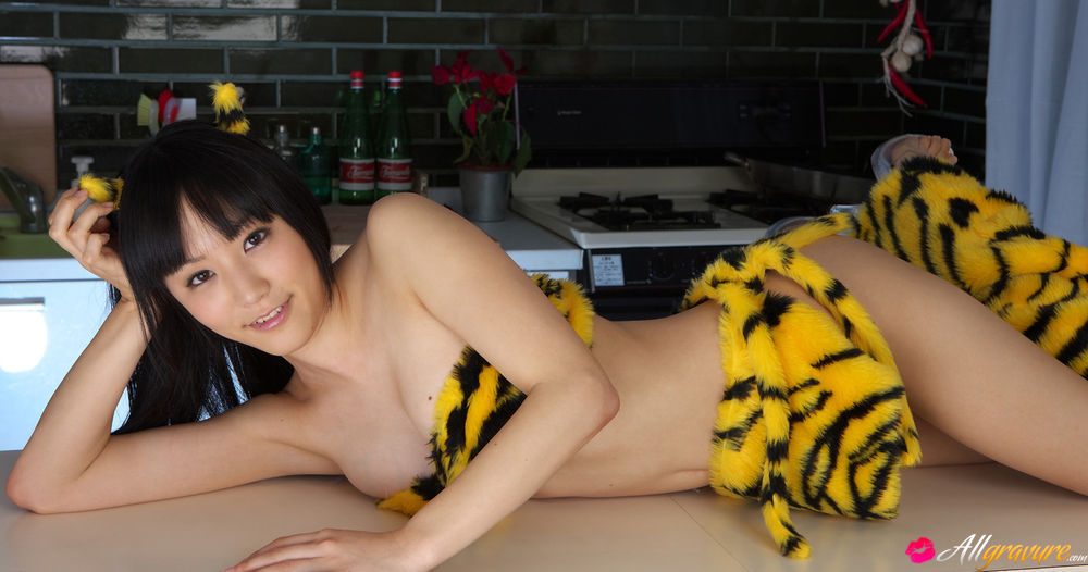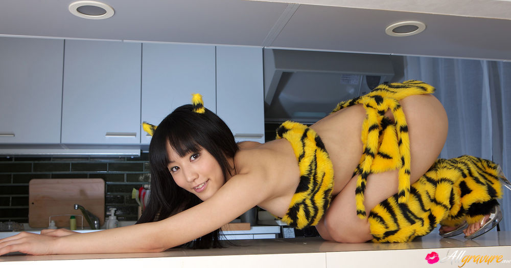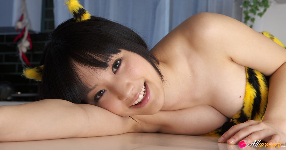 Naughty Asian model shows her nice tits in her skimpy outfit