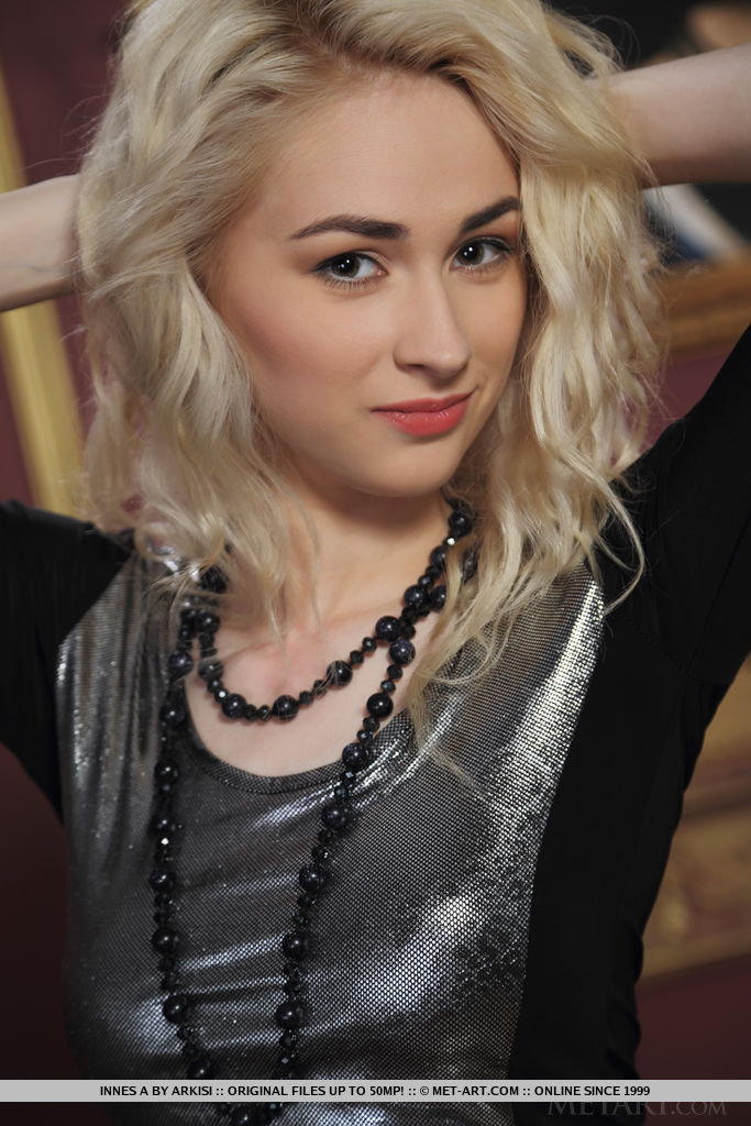 Innes A strips her party dress and flaunts her best assets with a warm, vivacious smile that brightens up the elegant set.