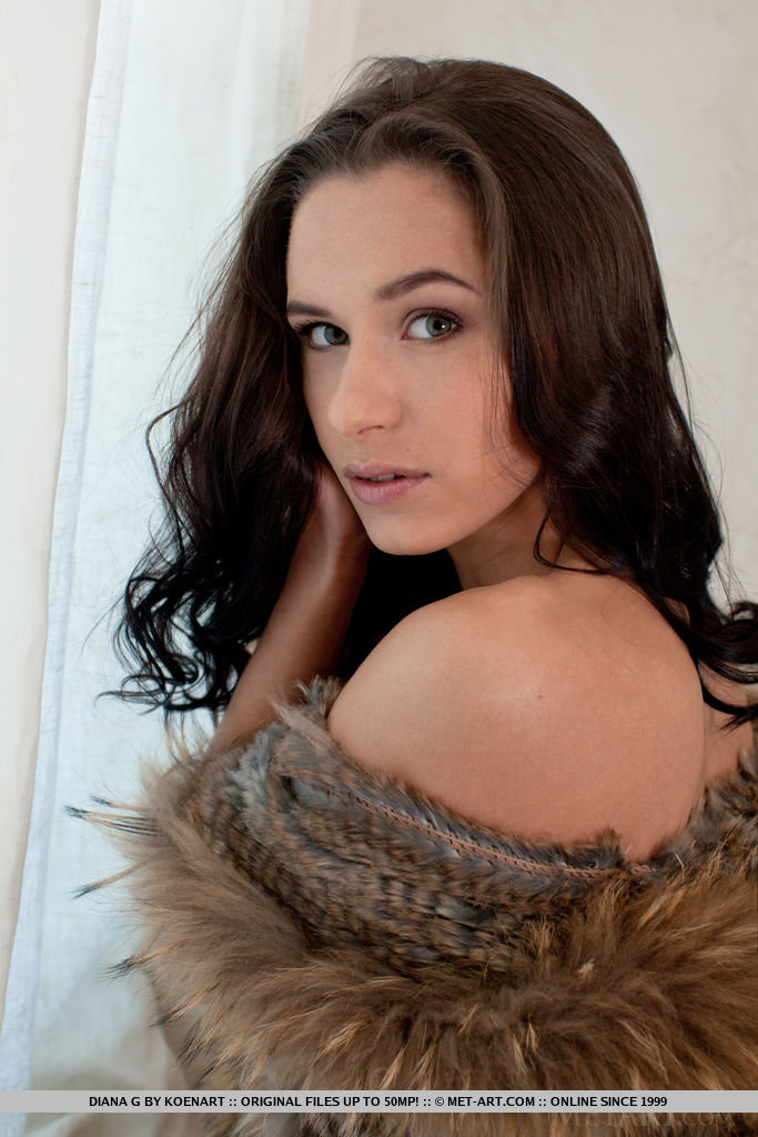 Diana G undress her luxuriant fur coat and delicate lace panty, revealing her athletic physic with perfectly tanned complexion and flexible limbs.