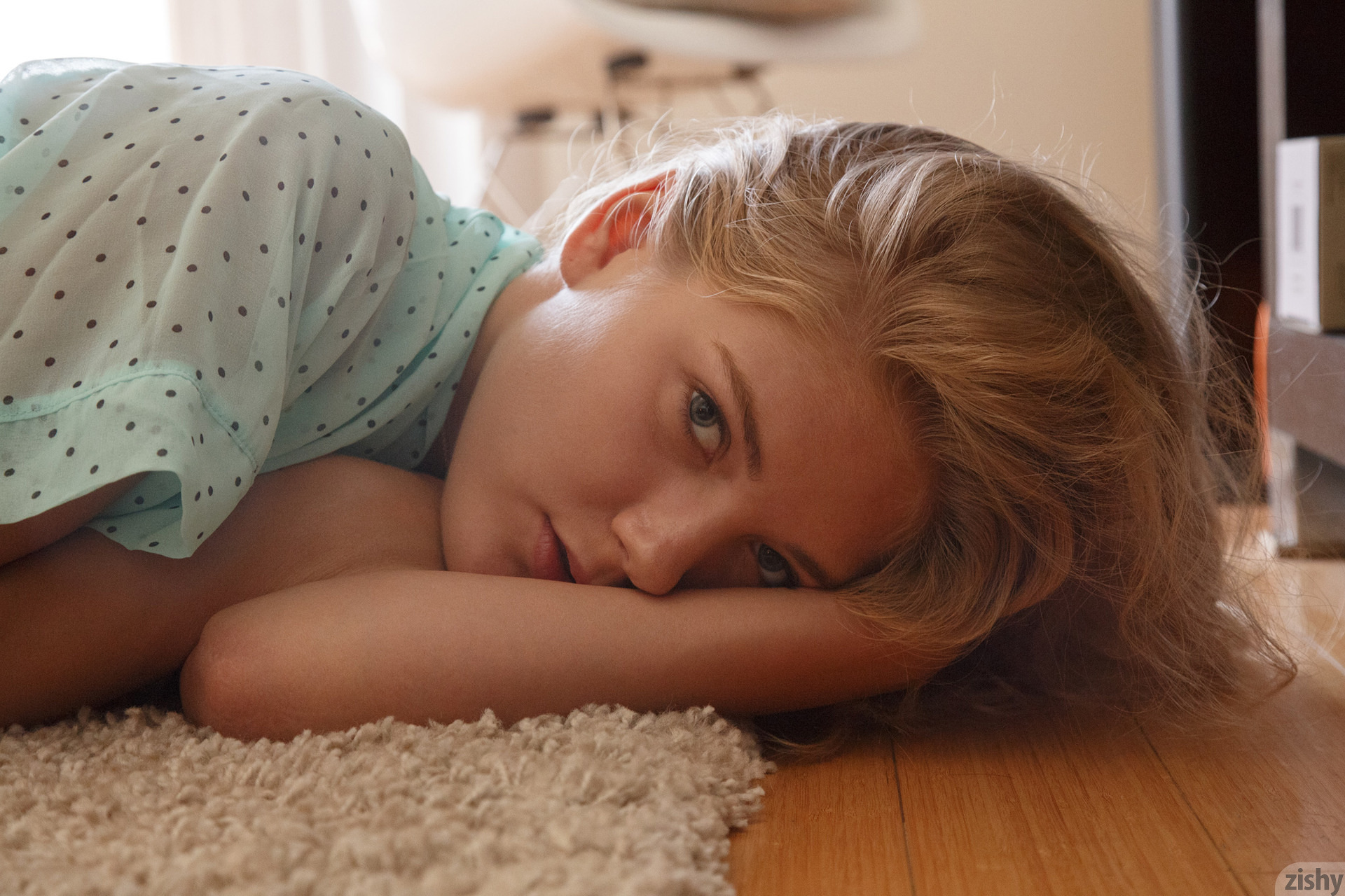 Once you've caught Alex Diaz's eye, this lusty piece of ass won't let it go until she gets what she wants. Let the hot redhead draw you in with her do me smiles as she peels off her bra and panties. Watch this fair skinned beauty shove her magic fingers