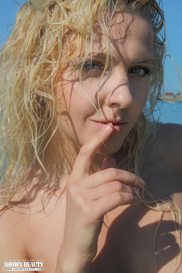 This petite blonde takes her hot beach outfit off piece by piece and you see more of her juiciness.