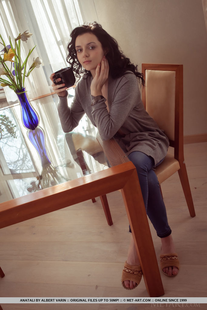 Anatali shows off her beautiful tits and sweet pussy on the chair.